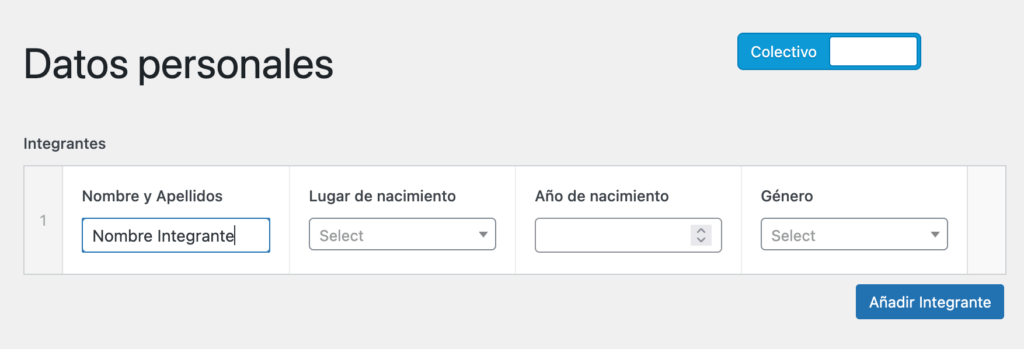 Al hacerlo, podrás añadir integrantes del colectivo y su información básica.